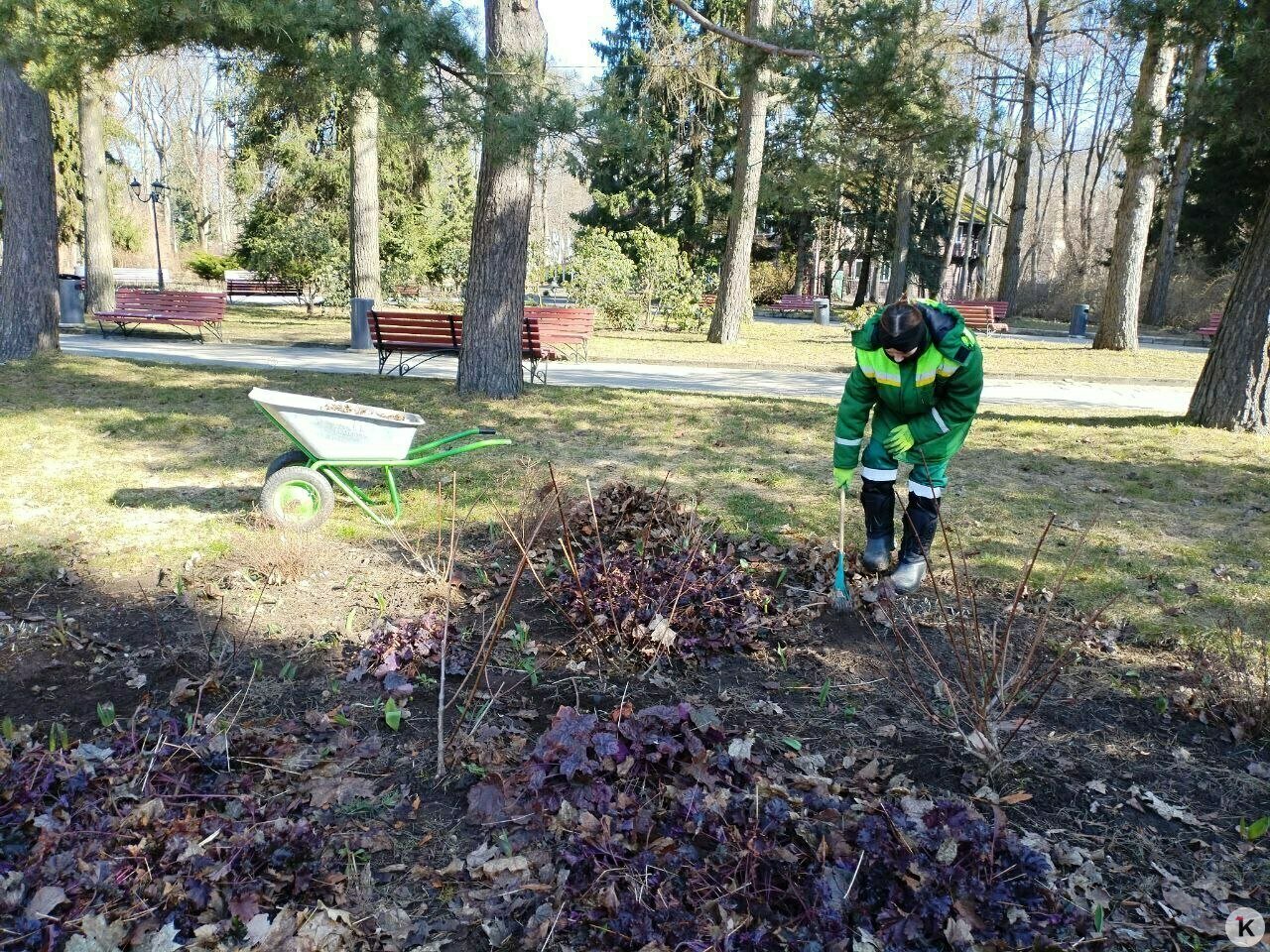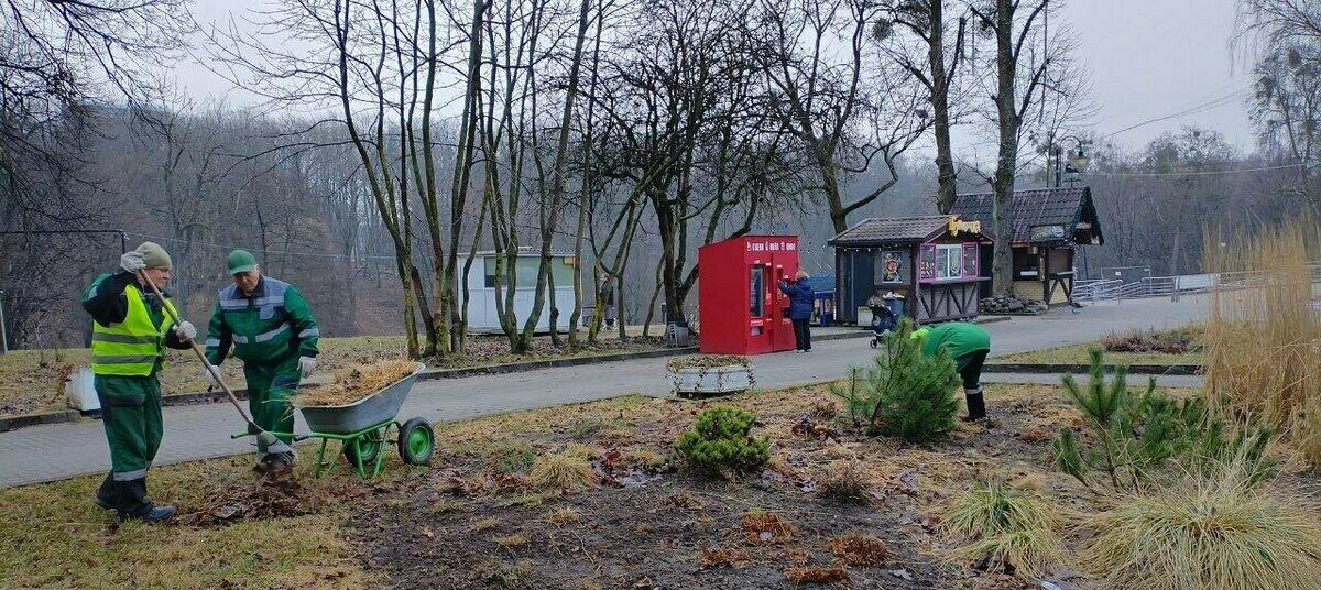 Параллельно ведутся садовые работы: обрезают многолетние злаковые растения, приводят в порядок газоны, откуда вычищается старая трава, прошлогодние листья и мох. Стригут и декоративные кустарники. В этом сезоне они требуют внимания больше чем обычно. Теплолюбивым культурам из-за морозов пришлось очень тяжело.