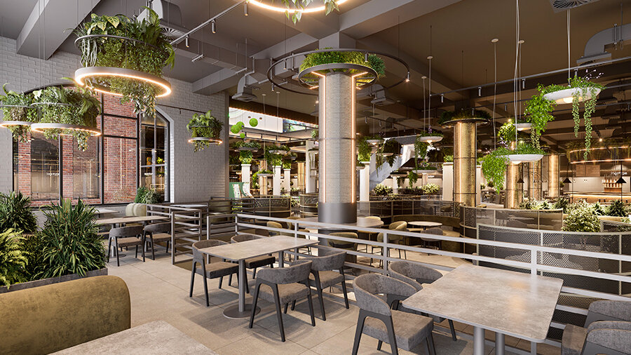 В числе ключевых этапов проекта — создание современного фуд-холла на третьем этаже — гастрономического пространства с кухнями мира, удобными зонами отдыха и атмосферой городского общения.