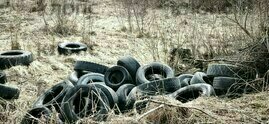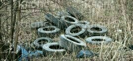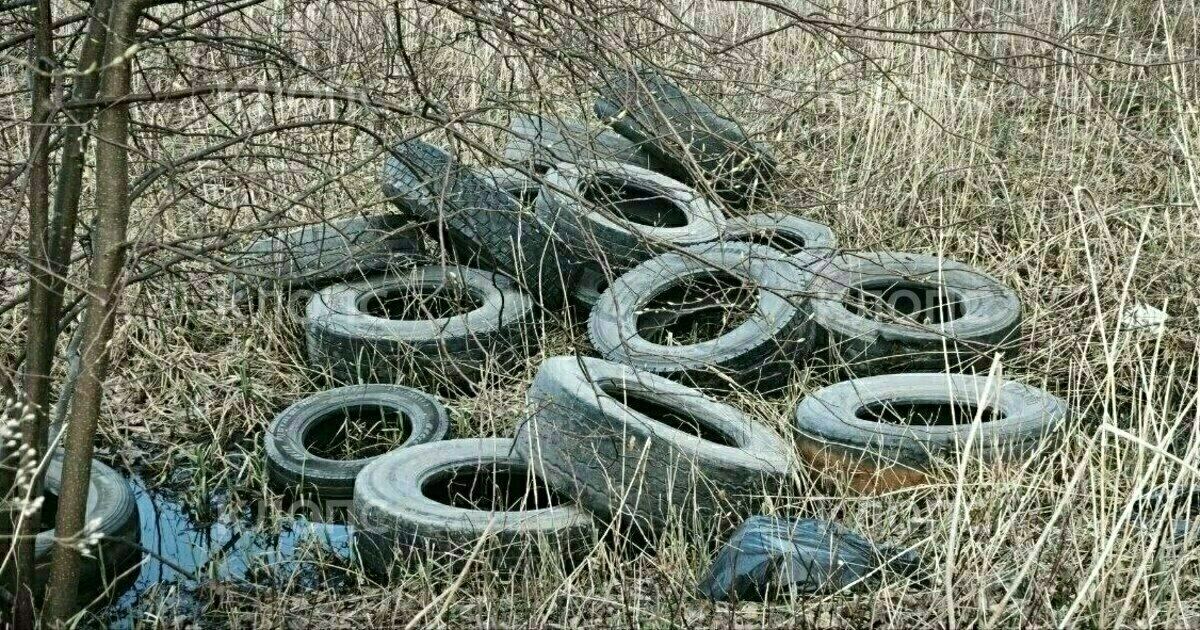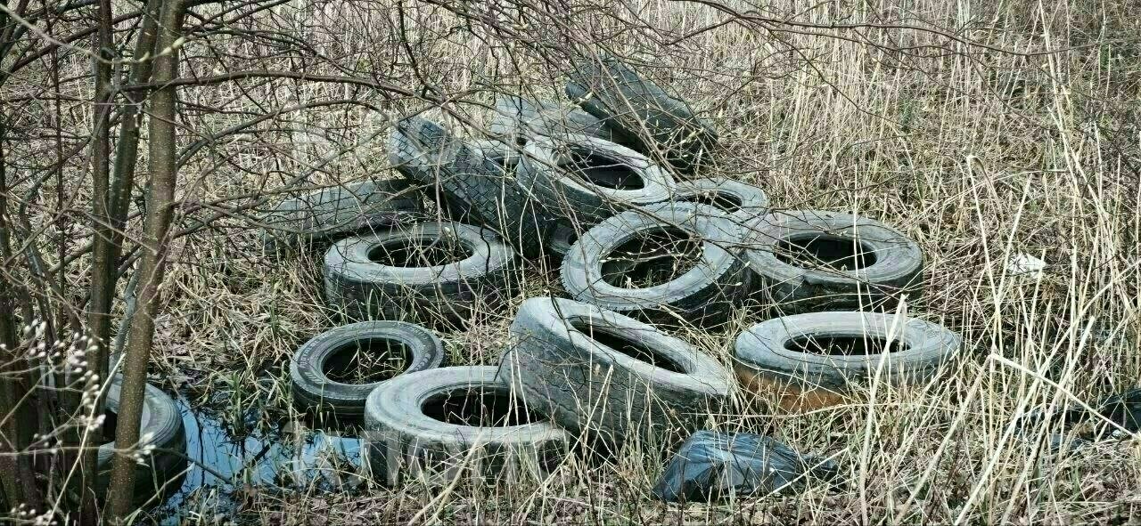 В понедельник, 30 марта, мужчина выехал отдохнуть на природу и совершенно случайно увидел в безлюдном месте горы шин. Кругом всё было в золе и остатках жжёной резины.