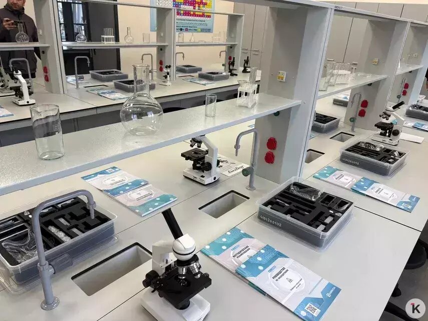 В кабинете трудов у девочек есть новые швейные машинки и кухня со всем необходимым для готовки инвентарём. В классе у мальчиков есть два 3D-принтера.