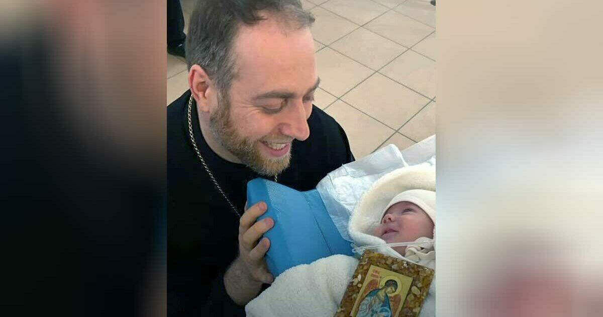 Этот ролик разлетелся по интернету мгновенно: голубоглазый священник с рыжеватой бородой, присев на корточки рядом с крестильной купелью, доверительно беседует с двухмесячным младенцем.