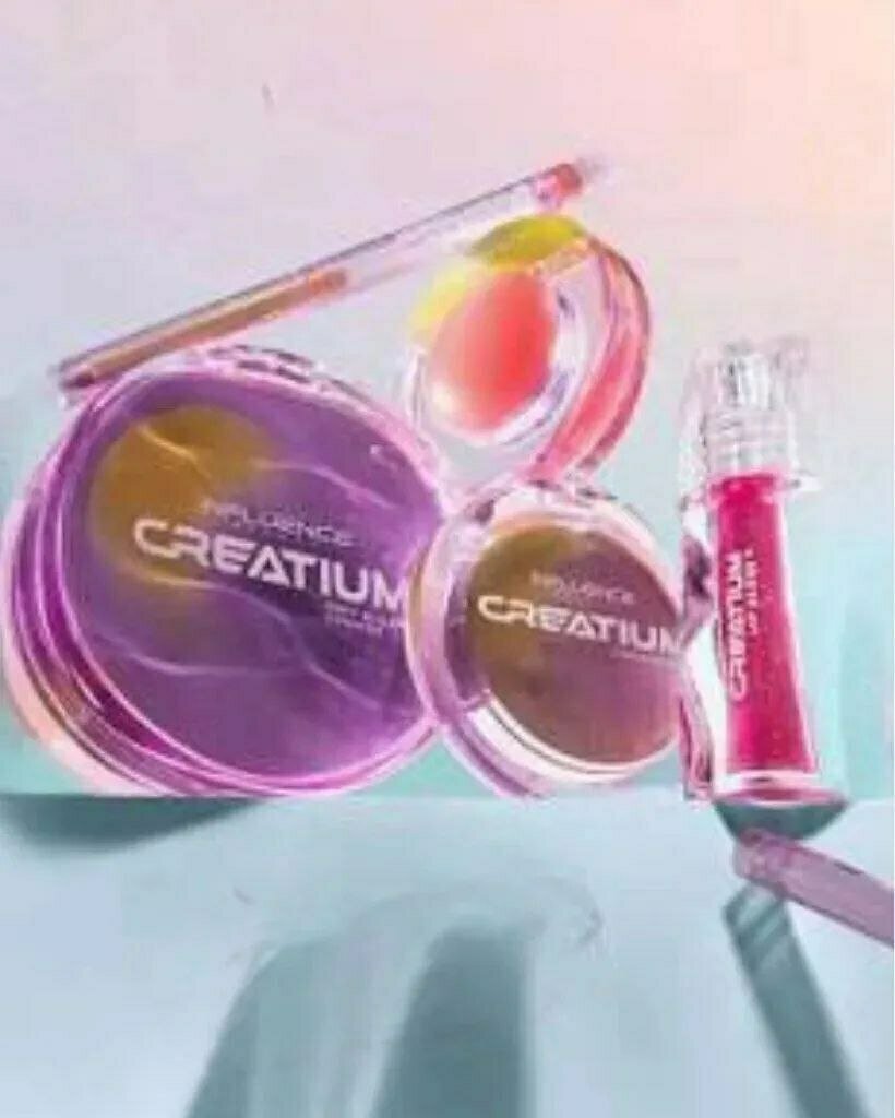 1. набор из лимитированной коллекции Creatium Influence Beauty (тональный кушон с блюр-эффектом, блеск для губ, тени для век, уход для губ, карандаш для губ с плампингом);
