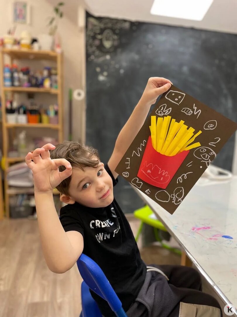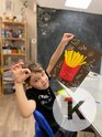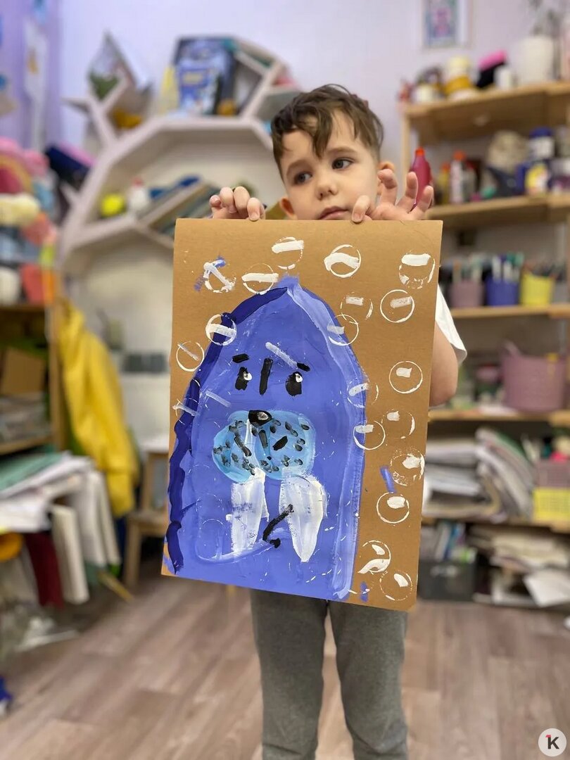 Но есть и другое. Марк рисует — с упоением и по-настоящему здорово. С его ярких гуашевых «холстов» улыбаются зеленоглазые тигры и стеснительные зебры, топорщится почти как настоящая картошка-фри и разлетаются прозрачные мыльные пузыри.