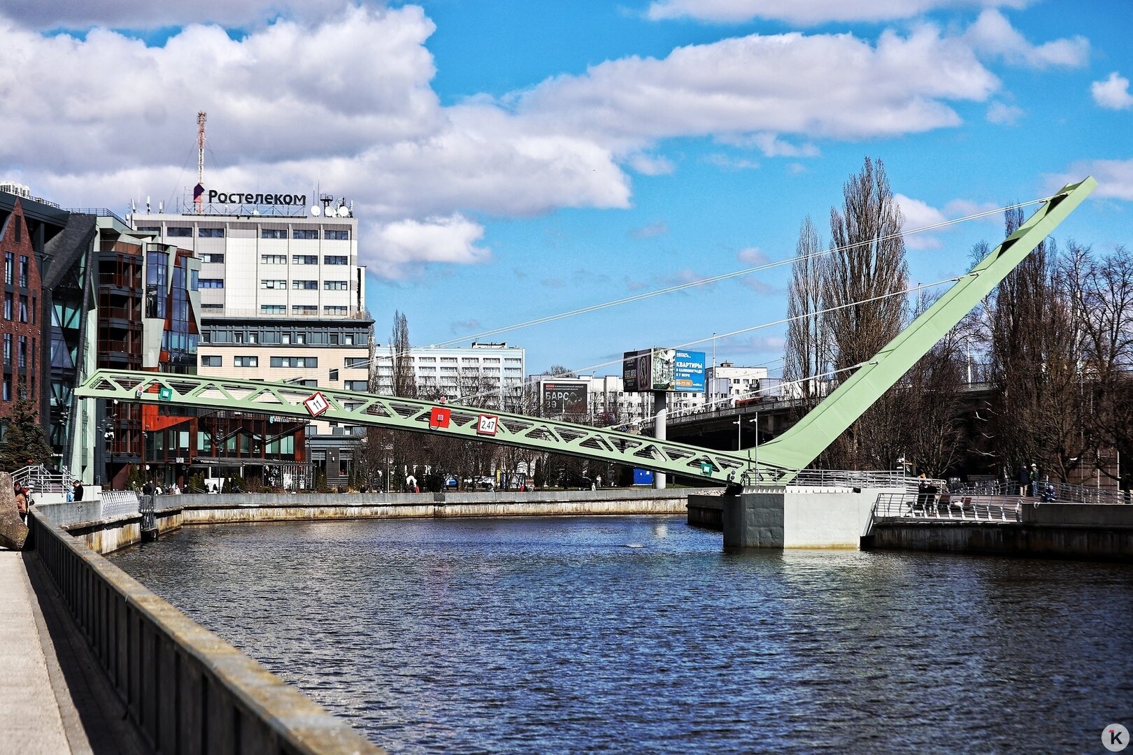 В Калининграде официально открыли пешеходный мост, соединивший набережную на Баграмяна с островом Канта. Фотокорреспондент «Клопс» прогулялся по новой переправе в четверг, 9 апреля.