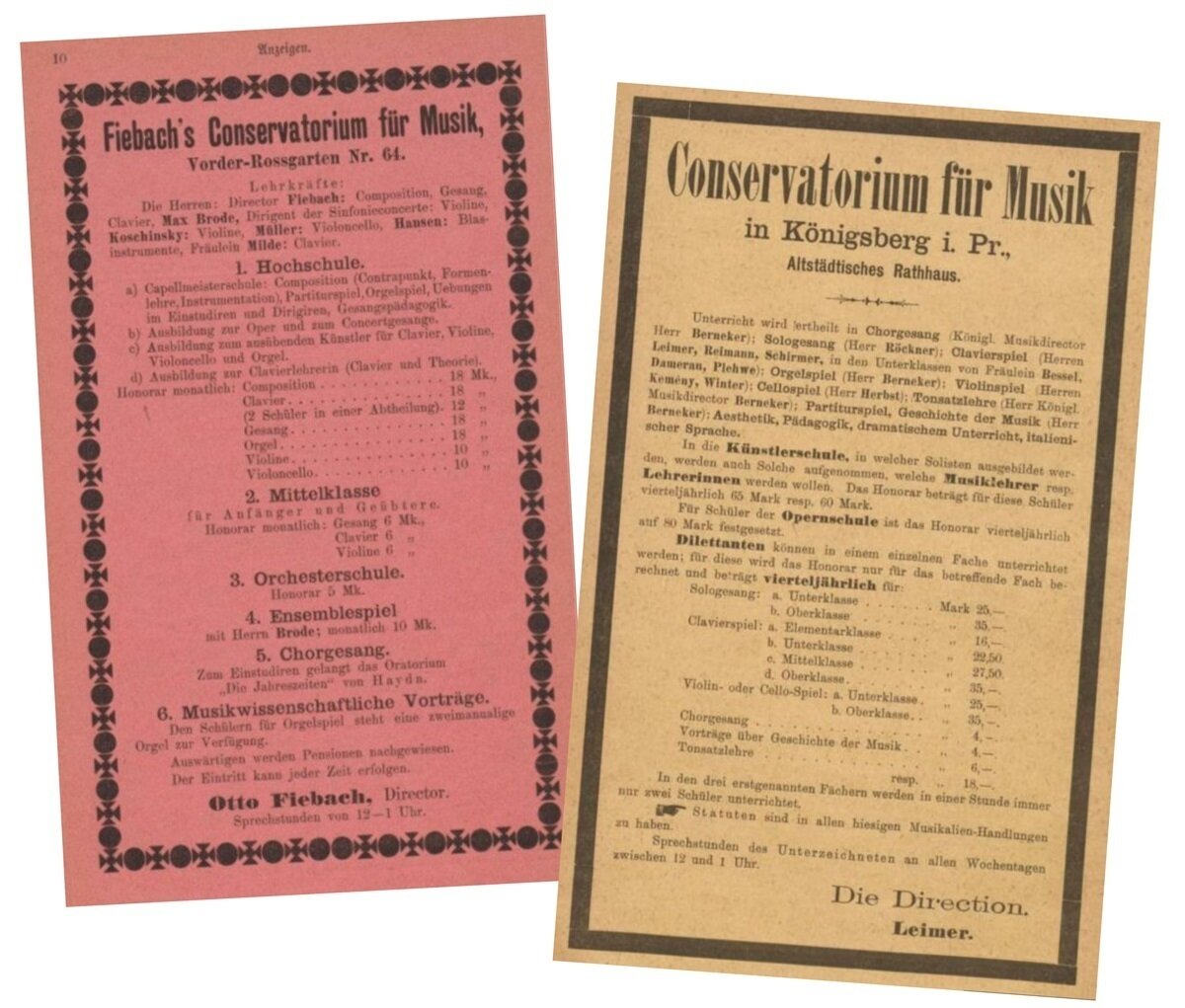 Вообще в Кёнигсберге конца XIX века уже не было проблемой отыскать соседа, разучивающего Баха, Моцарта или напевающего арию Кармен (особенно после громкой премьеры в Оперном театре). Здесь счастливо жили две консерватории, где готовили органистов, пианистов, виолончелистов, скрипачей и духовиков.
