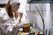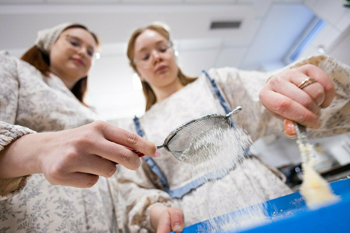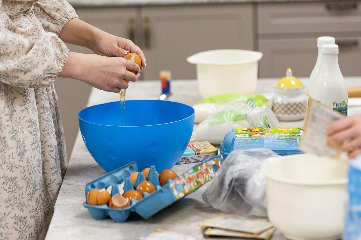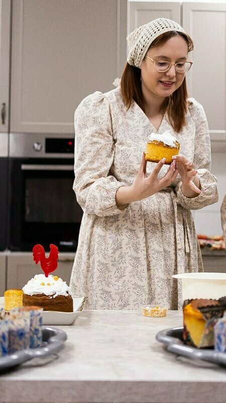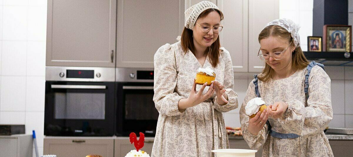 «В нашем храме сложилась замечательная и добрая традиция. Второй год куличи для храма выпекает молодёжь. Сегодня второй день, как мы трудимся», — рассказывает одна из мастериц, дочь настоятеля храма Мария Промзелёва.