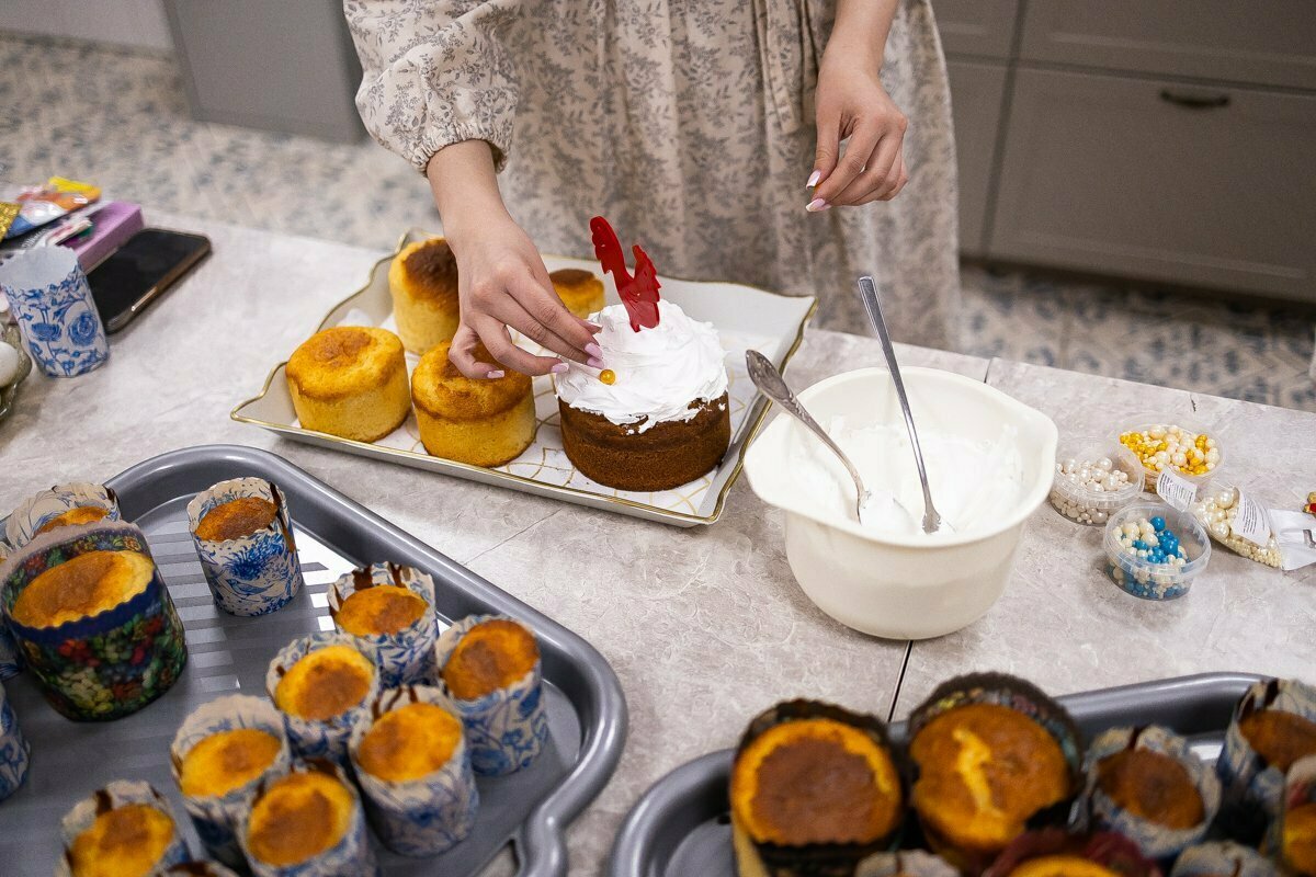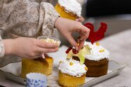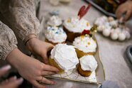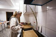 Трапезная заполняется манящим запахом свежей выпечки. Пришла пора доставать куличи из печи и заниматься их украшением.