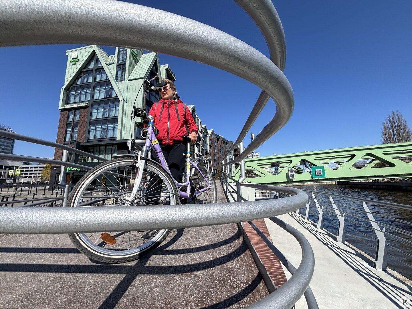 Места для всех явно не хватает: при большом потоке пешеходов передвигаться на самокате и велосипеде неудобно. Седокам приходится спешиваться, но не только из-за толчеи. Со стороны острова Канта подъём на мост плавный, а с обратной пандус оборудован только для инвалидов: с велосипедом практически не развернуться.