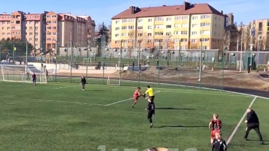 Футболист-подросток из Калининграда набросился на судью и пнул его шипованной бутсой на детском турнире (видео) - Новости Калининграда | Скриншот записи матча