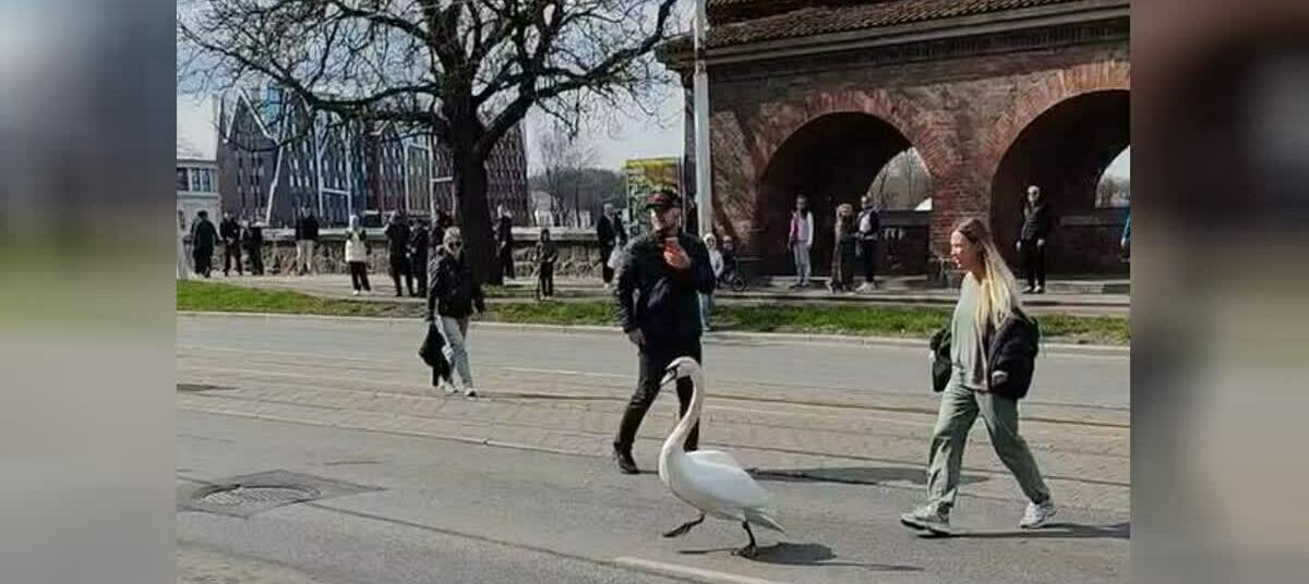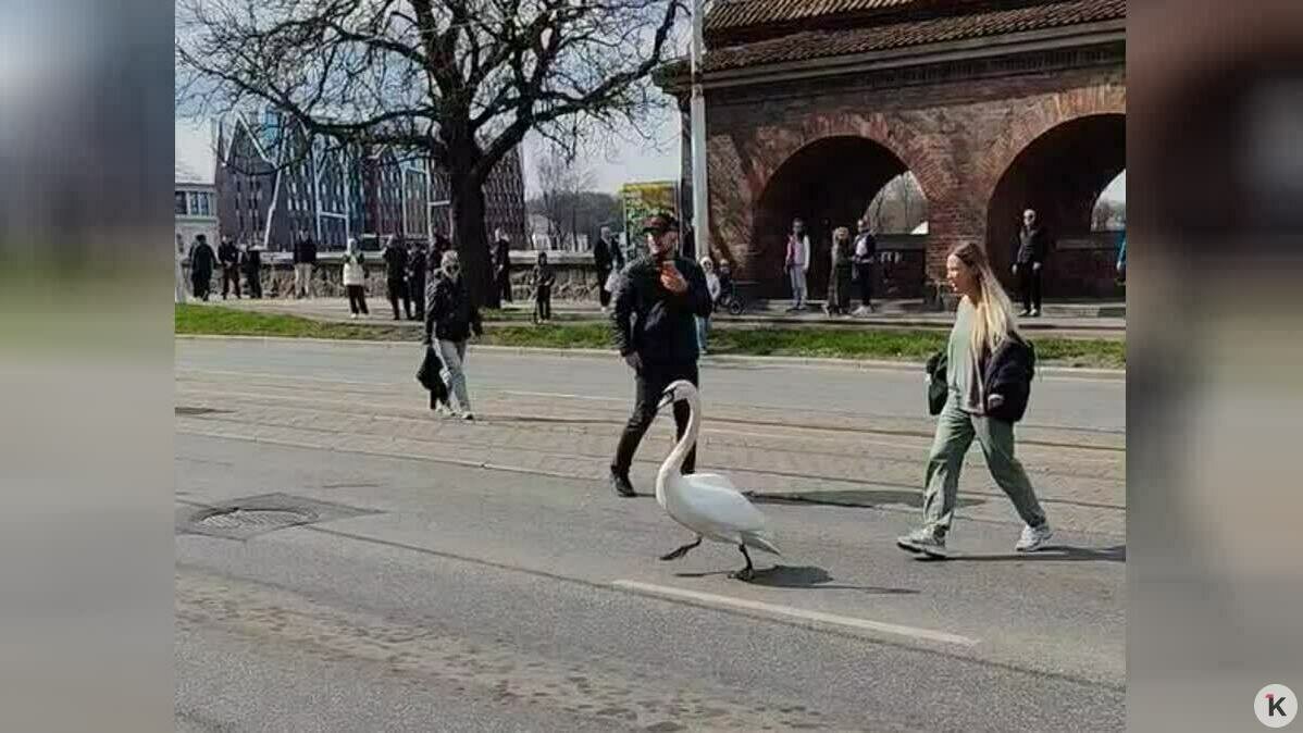 По словам свидетелей, лебедь упал около 14:15 в районе Музея янтаря.