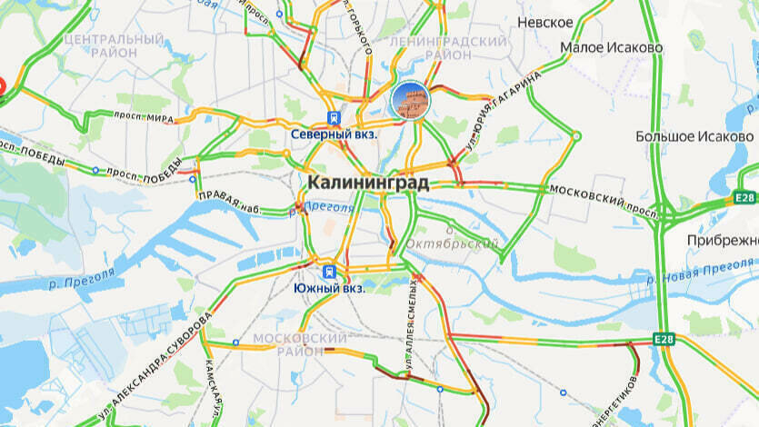 Калининград утром в среду, 15 апреля, встал в пробках. Об этом говорят данные сервиса «Яндекс.Карты».