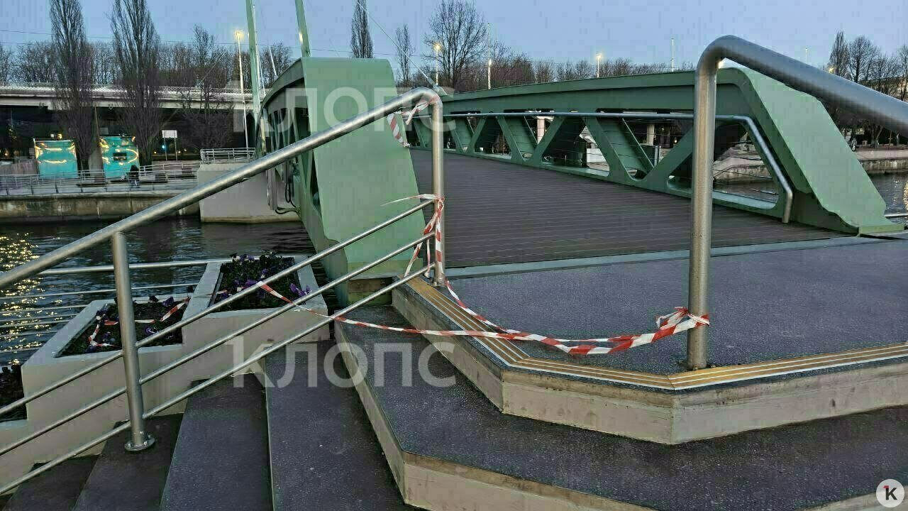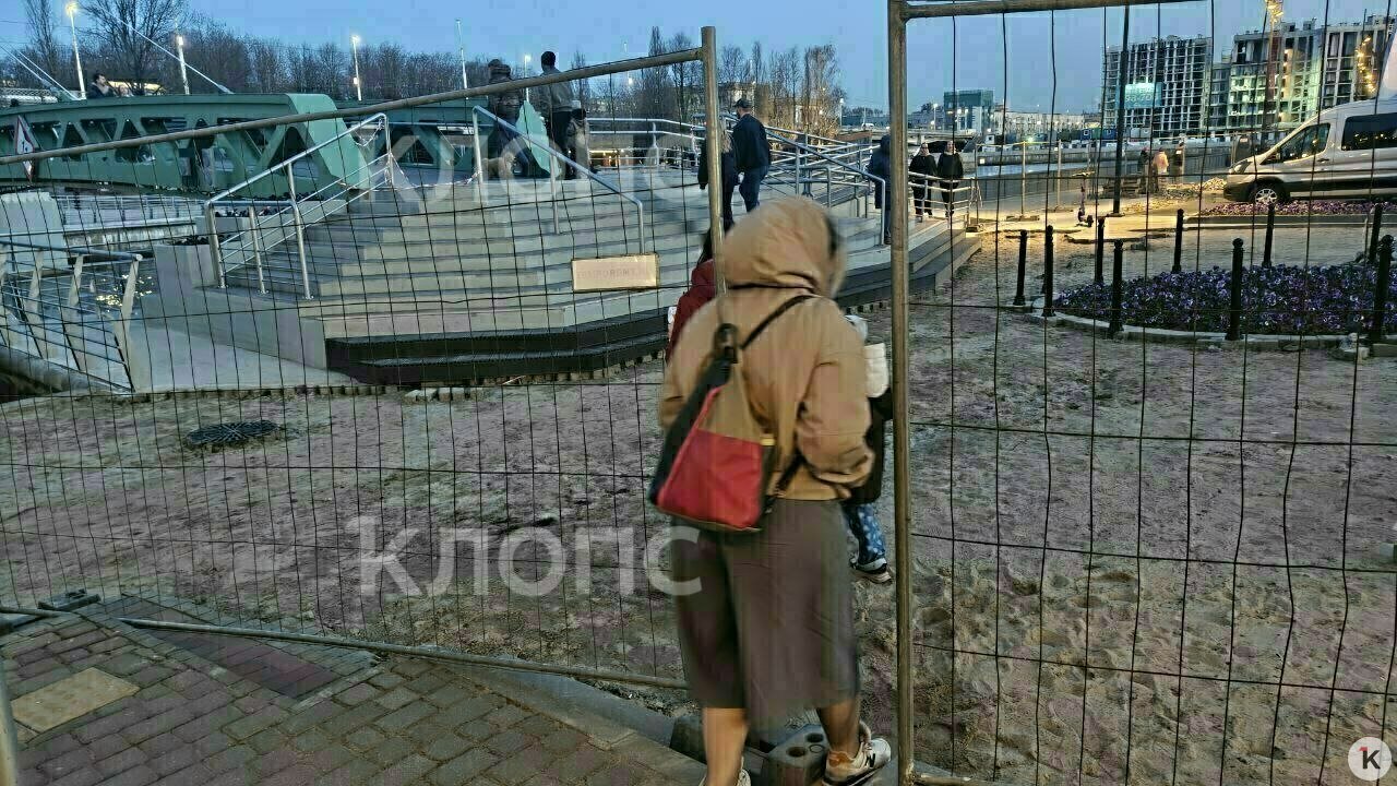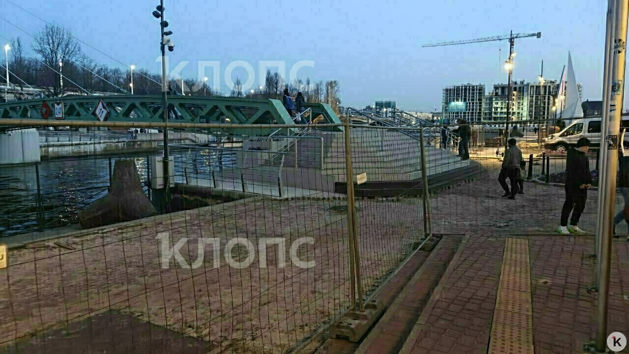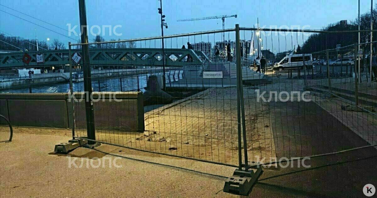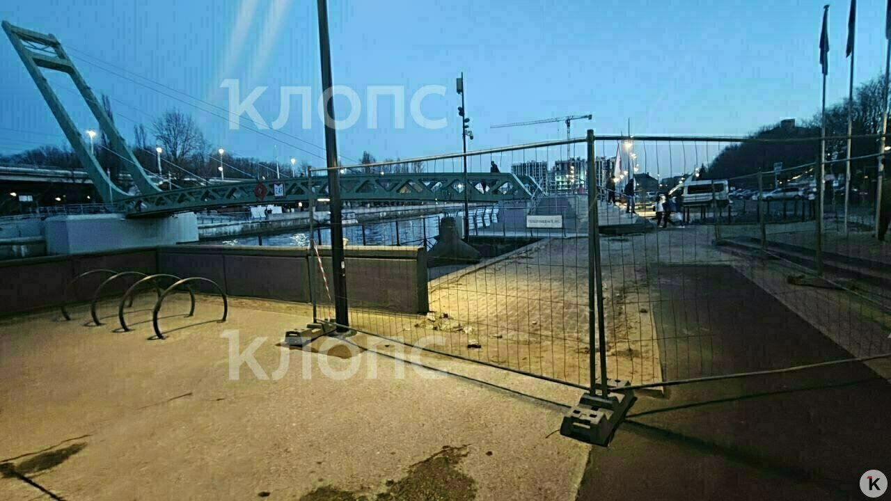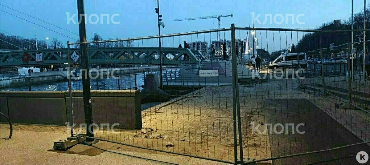 В Калининграде недавно открытый Философский мост оказался частично недоступен для пешеходов. Об этом «Клопс» рассказал очевидец в четверг, 16 апреля.