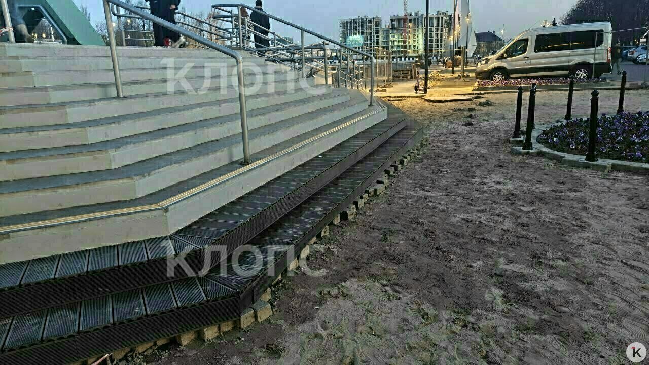 Очевидец отметил, что на части территории снята плитка, хотя при открытии моста с покрытием всё было в порядке. Фактически открытой остаётся только дорожка, предназначенная для маломобильных граждан. Кроме того, сигнальные ленты на месте повреждены, и горожане продолжают пользоваться мостом, несмотря на ограничения.