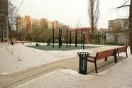 Во дворе обновили проезжую часть, тротуары и пешеходные дорожки, сделали дождевую канализацию и гостевую парковку на 20 мест. Появилась спортивная площадка с резиновым покрытием, контейнерная площадка, газоны. Рядом высадили 22 дерева и 22 кустарника, установили шесть скамеек и четыре урны.
