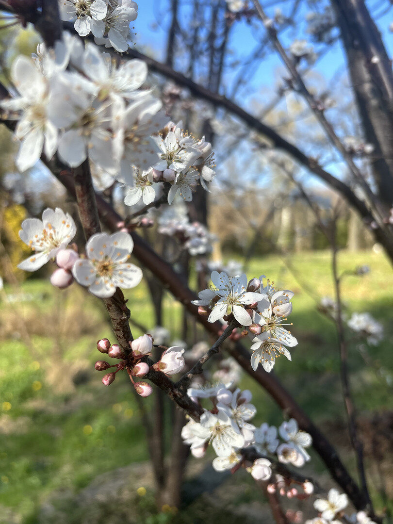 Аллеи сада украсили цветущие рододендроны, форзиция, сакура и алыча.