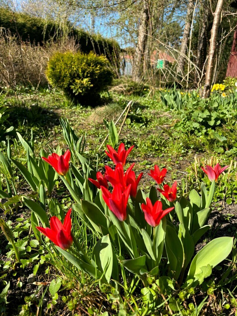 Первоцветы разных мастей распускаются на полянках: примулы, ветреницы, пролески. Появляются первые тюльпаны и гиацинты. «Сад цветёт вовсю, приходите любоваться», — заключила Светлана Калинина.