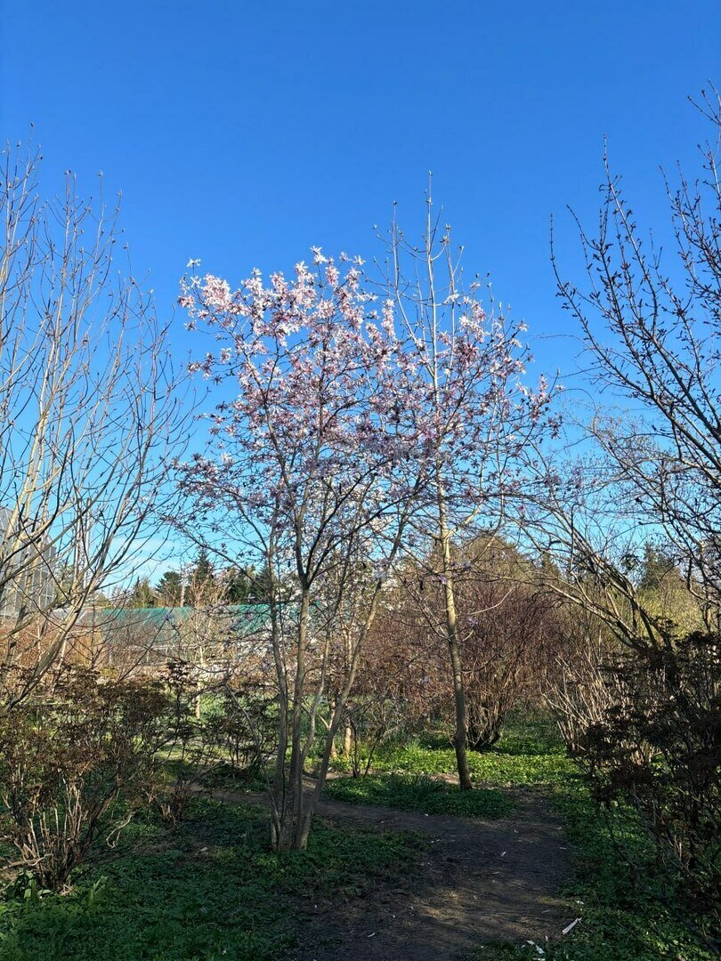 «Сейчас огромные белоснежные деревья полностью расцвели — это магнолии кобус на нашей аллее. Другие виды, гибриды, сорта тоже распускаются, и можно увидеть молодые деревца с цветками различных оттенков розового и пурпурного», — рассказала Калинина.