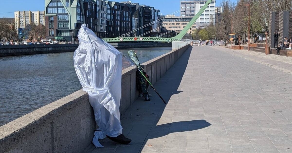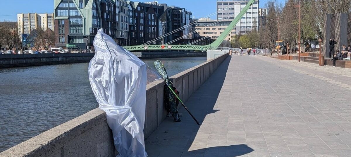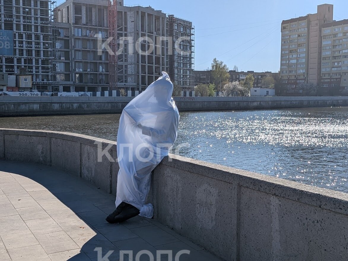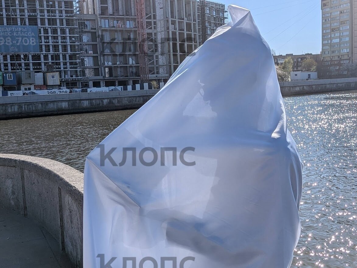Днём во вторник, 21 апреля, на Южной набережной Острова неподалёку от Философского моста уже можно видеть сидящую на парапете фигуру в человеческий рост, укутанную в белую ткань. На ярком солнце сквозь материю просвечивает силуэт с книжкой в руках: тонкий профиль, очки. Прохожие, которых в этом уголке парка немного, и рыбаки с интересом останавливаются рядом, пытаясь рассмотреть «читателя».