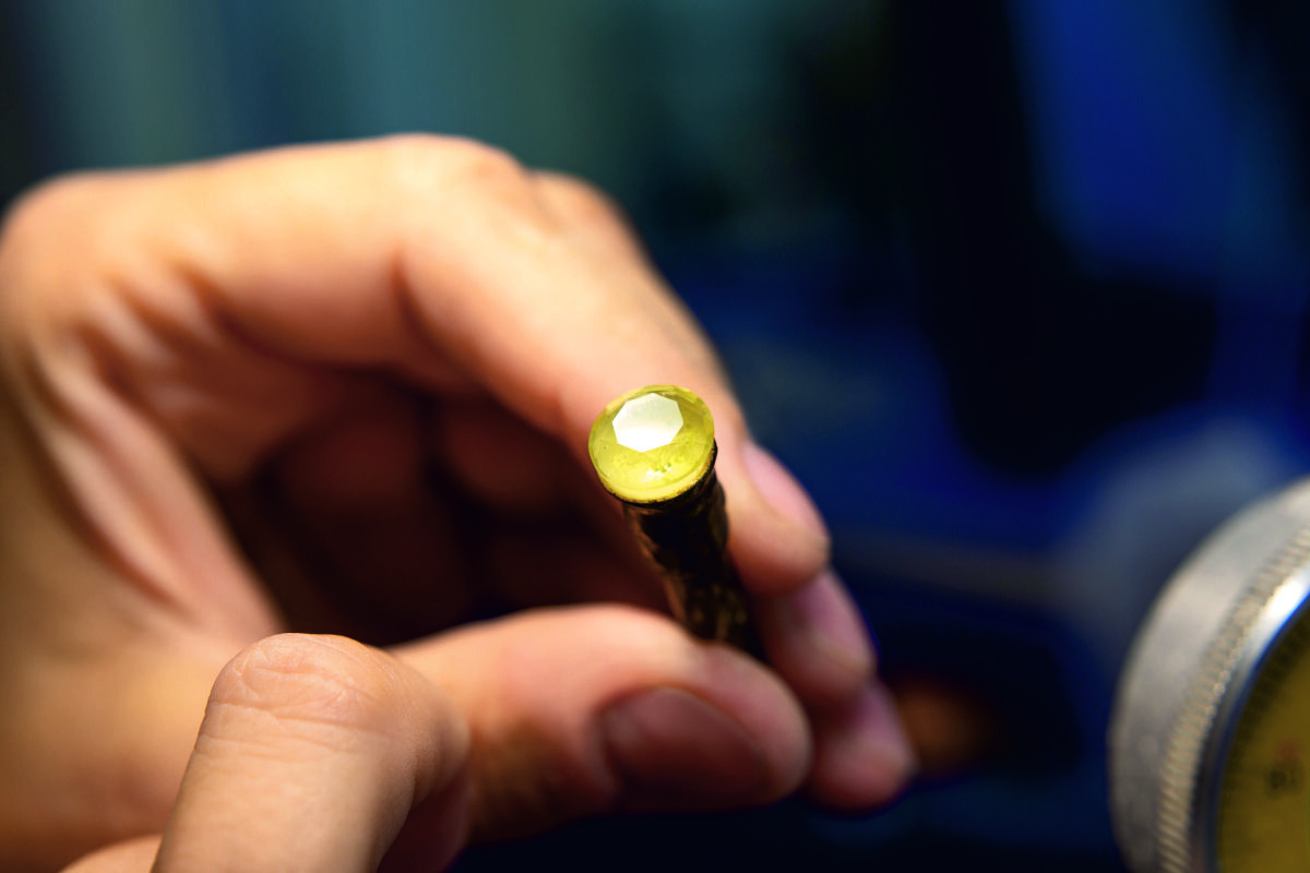 Каждое изделие формируется вручную, с использованием станка с алмазным диском. Мастера создают от 17 до 88 граней на камне, контролируя пропорции и свечение через увеличительное стекло. За смену специалист обрабатывает до 15 камней.