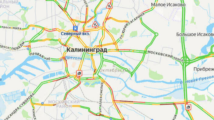Калининград утром в пятницу, 24 апреля, встал в пробках. Об этом говорят данные сервиса «Яндекс. Карты».