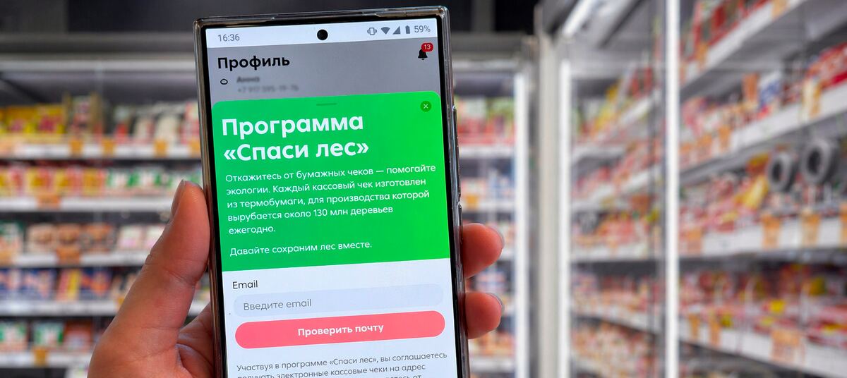 Торговые сети развивают экологические проекты. Например, с августа 2025 года в рамках программы «Спаси лес» миллионы клиентов «Пятёрочки» перешли на использование электронных чеков. Люди могли поддержать инициативу в мобильном приложении через email, сохранив российские леса: было сэкономлено более 220 тысяч рулонов кассовой ленты, что эквивалентно сохранению 221 дерева.