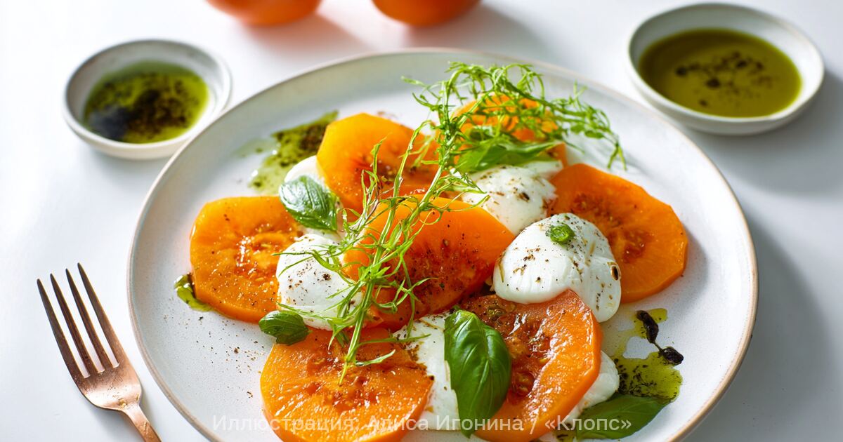 Звезда телестройки решила отойти от канонов и заменить помидоры хурмой. В итоге получается сладко-солёная закуска, которая смотрится эффектно и не требует долгой готовки. «Необычное сочетание, но безумно вкусное, яркое блюдо», — восхищается Бузова своей находкой.