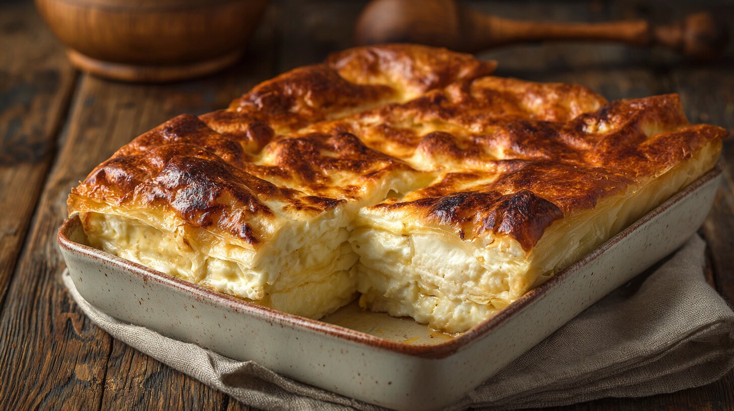 Лаваш смазать яично-кефирной заливкой, выложить слой адыгейского сыра и немного твёрдого. Сверху разместить лаваш, повторить всё несколько раз. Последний слой закрыть свисающими краями лаваша и оставшейся заливкой.