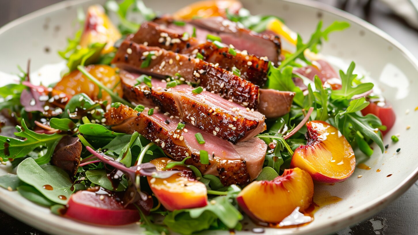 Тёплый салат с уткой и персиками