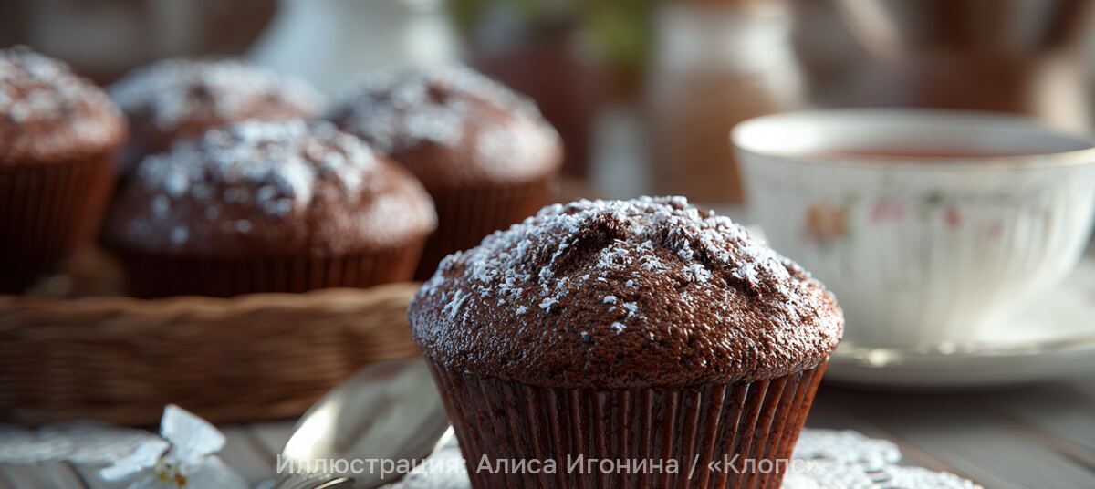 Детей не оттащить за уши: секрет сочных шоколадных маффинов на скорую руку - Новости Калининграда | Иллюстрация: Алиса Игонина / «Клопс»