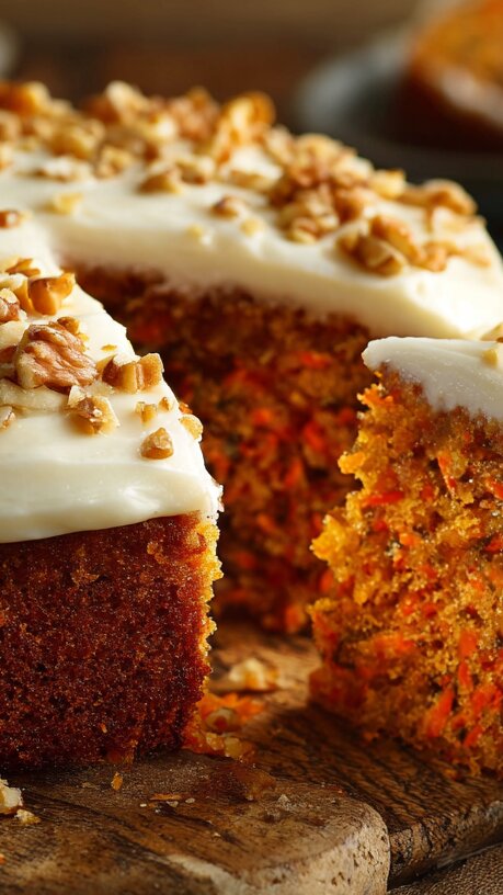 В мире домашней выпечки есть блюда, которые по праву считаются эталоном уюта. Морковный пирог — именно такой случай. Не стоит пугаться главного ингредиента: в выпечке морковь ведет себя волшебно. Она отдает тесту всю свою сладость и влагу, делая мякиш невероятно сочным и нежным, с красивым золотистым оттенком. Этот рецепт проверен годами и десятками благодарных едоков. Специи (особенно корица) идеально оттеняют вкус моркови, а грецкие орехи добавляют приятный контраст текстуры. Этот пирог хорош сам по себе, но если вы хотите превратить его в десерт для особого случая, подайте его с нежным сливочно-сырным кремом.