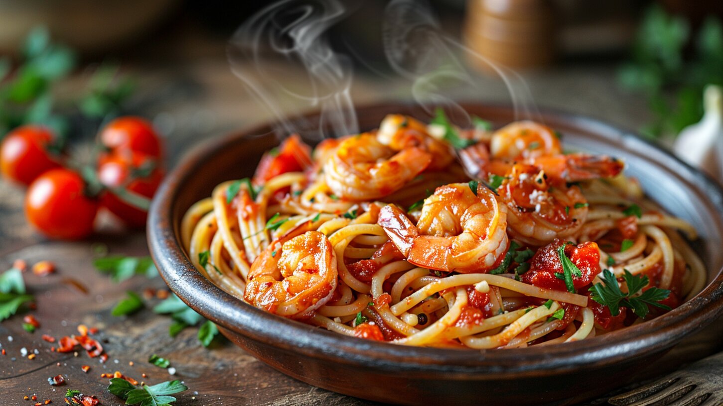 Легкое, но изысканное блюдо, которое готовится быстрее, чем вы сходите в магазин за полуфабрикатами. Пикантный чеснок и сочные креветки — идеальная пара для спагетти.