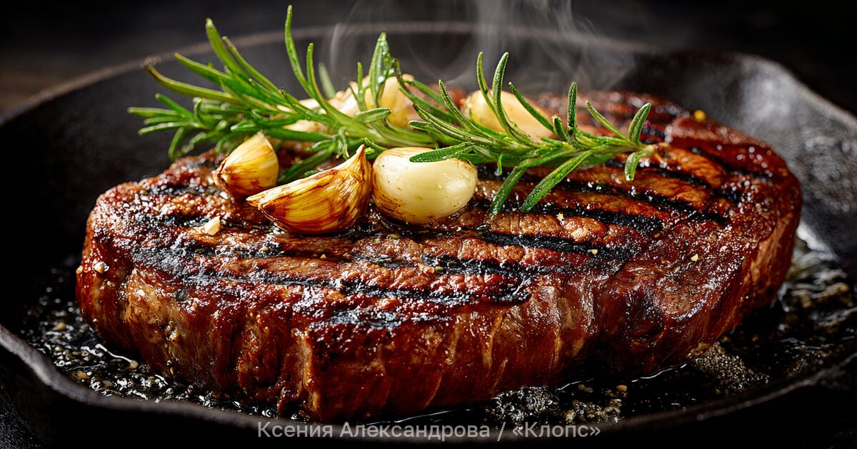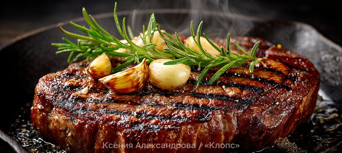 Medium (средняя прожарка) — по 5–6 минут с каждой стороны, затем оставить томиться на сковороде ещё 7 минут.