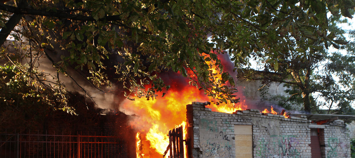 Очевидцы сообщили "Клопс.Ru", из-за пожара окрестности Советского проспекта заволок черный дым – внутри заброшенного гаража горели покрышки.