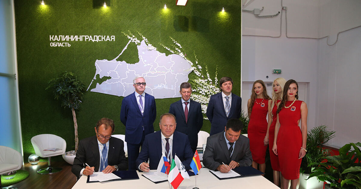 Губернатор Николай Цуканов, генеральный директор "Росморпорт" Андрей Тарасенко, президент международной судоходной компании MSC Cruises, исполнительный директор компании Grandi Navi Veloci Роберто Мортиноли подписали соглашение о намерениях по строительству международного морского терминала для приема круизных и грузопассажирских судов в городе Пионерский Калининградской области.