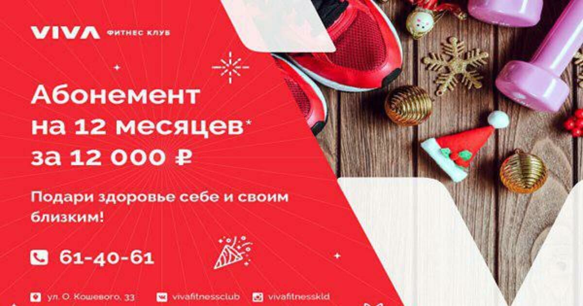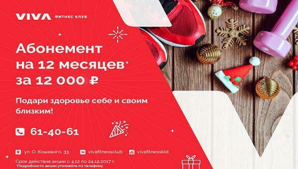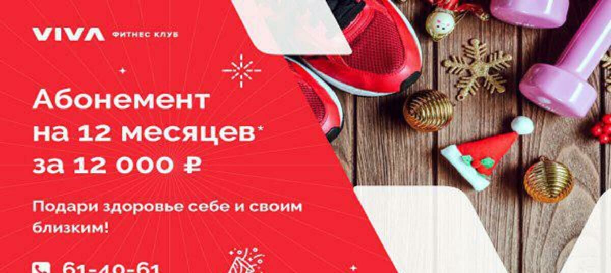К тому же сейчас есть замечательная возможность воспользоваться специальным предложением от фитнес-клуба VIVA — только в период с 4 по 24 декабря приобрести абонемент на 12 месяцев за 12 000 рублей. Информацию об организаторе акции, правилах проведения, количестве призов, сроках, месте и порядке их получения уточняйте по телефону 61-40-61.