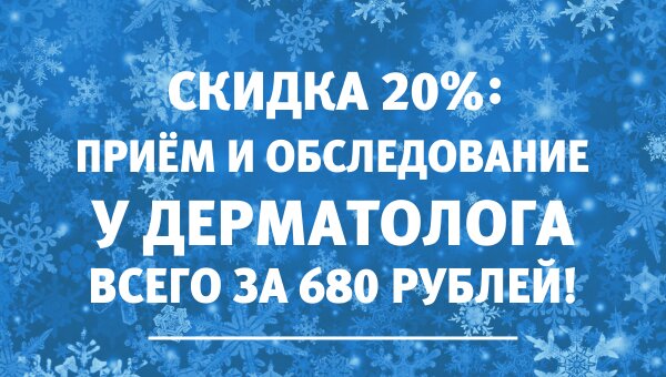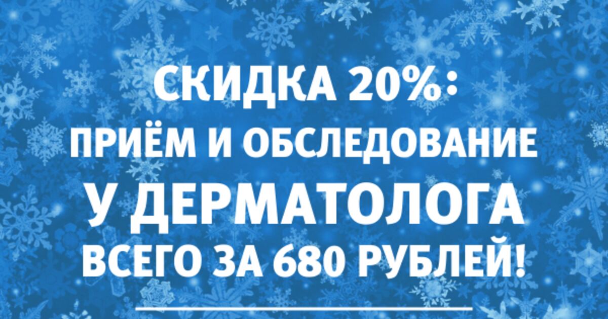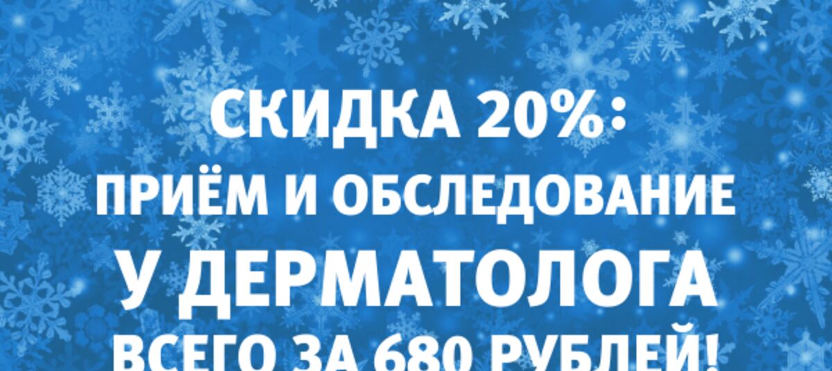 В медицинском центре Class Clinic в Калининграде по 30 декабря действует скидка 20% на приём и обследование в отделении дерматологии. Приём и консультация дерматолога стоят всего 680 рублей.