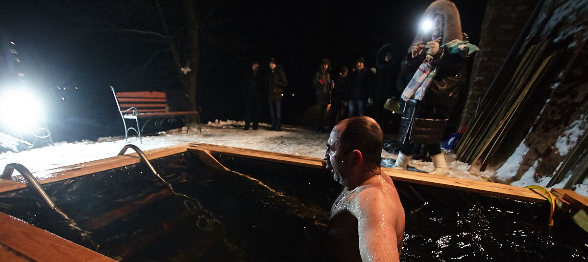 Используйте для омовения только участок водоёма, где официально организовано место для крещенских купаний, обеспечено дежурство спасательных служб, медиков, устроены палатки для переодевания и обогрева или разложены костры, организована раздача горячего чая.