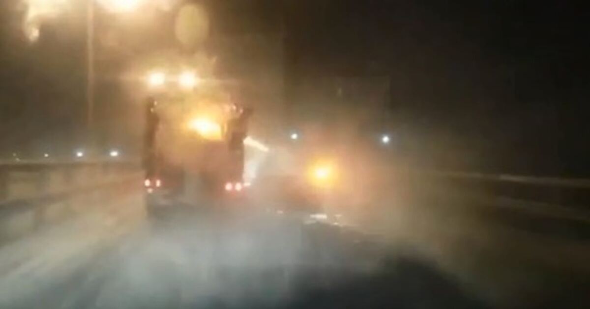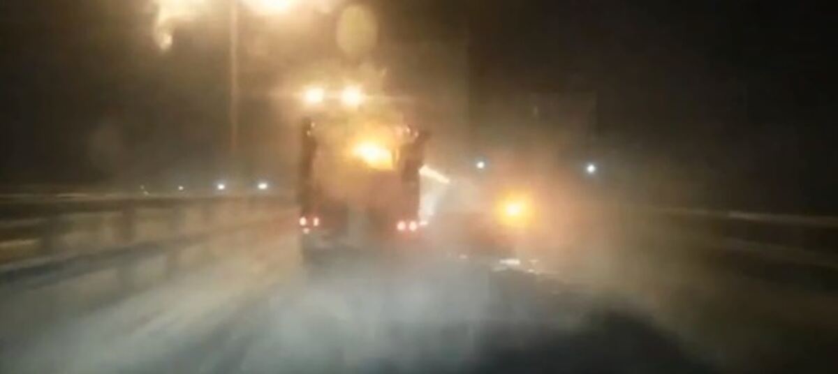 Действие происходило в ночь с понедельника, 5 февраля, на вторник, 6 февраля, на подъезде к Калининграду. В кадре заметно, что водитель техники с опущенным ковшом едет по скоростной проезжей части.