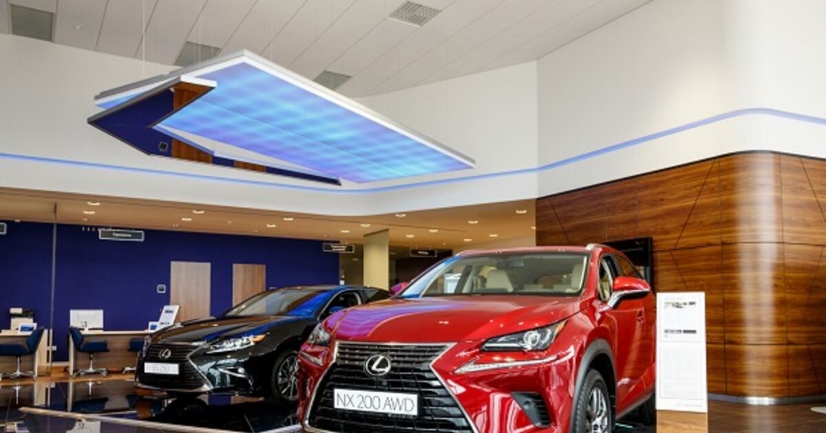 Дилерский центр построен в соответствии с концепцией корпоративных стандартов "Лексус-2020". В основе этой концепции лежит философия дизайна L-finesse, которая подразумевает гармонию передовых технологий и утончённости многовековой японской эстетики. Интригующая элегантность философии L-finesse заключается в том, что каждый элемент дизайна соединяет состояние движения и спокойствия. Интерьер дилерского центра стал более эксклюзивным и динамичным, а мебель выполнена по оригинальным чертежам.