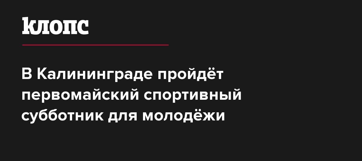 Субботник посвящён международному Дню весны и труда. В программе не только спортивные состязания и интерактивные конкурсы, но и чемпионат по уборке парка. Кроме того, калининградская молодёжь примет участие в разминке с фитнес-тренерам. Желающие смогут сдать нормативы ГТО. Организаторы обещают кашу и чай на полевой кухне.
