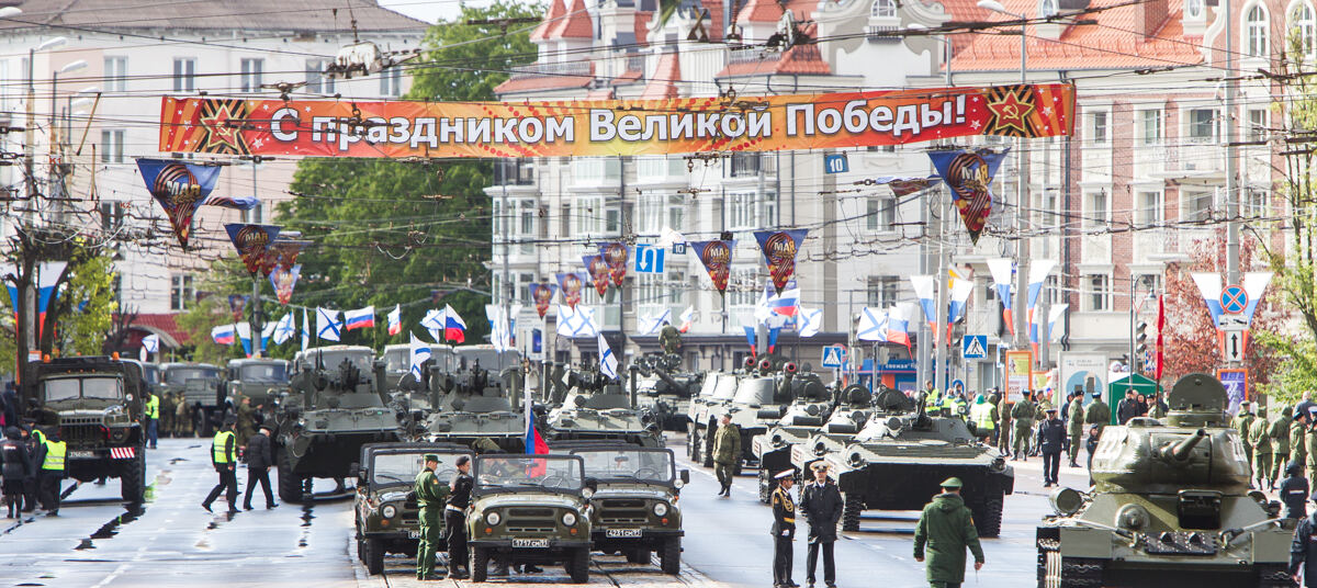 Парад пройдёт в Калининграде 9 мая на площади Победы, в нём будут участвовать 1811 человек и 64 единицы техники. Первыми перед трибунами прошагает роты барабанщиков, затем — знамённая группа и рота Почётного караула. Далее по площади пройдут сводные батальоны штабов Балтийского флота, Военно-морской академии, юридического института МВД, а также парадные расчёты Калининградского пограничного института ФСБ, управления Росгвардии, МЧС, УФСИН и других ведомств. Замыкать парад будут "юнармейцы".