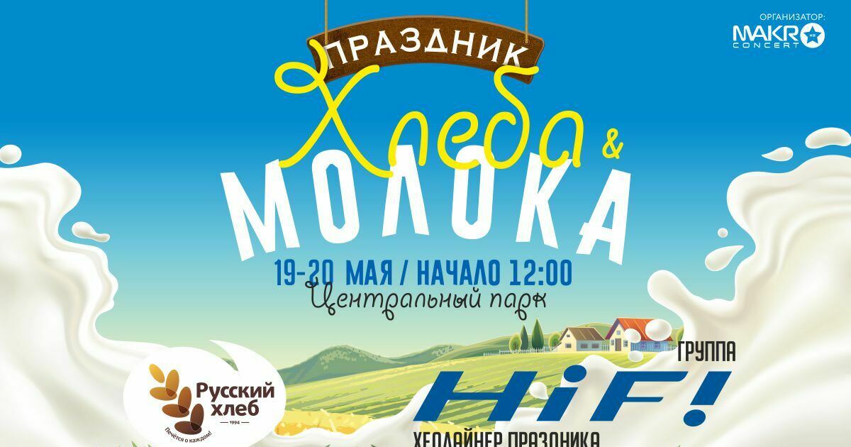 "Макроконцерт-Калининград" приглашает всех на самый тёплый, душистый и самый семейный праздник, IX День хлеба и молока в Центральный парк — на все выходные 19 и 20 мая 2018 года!