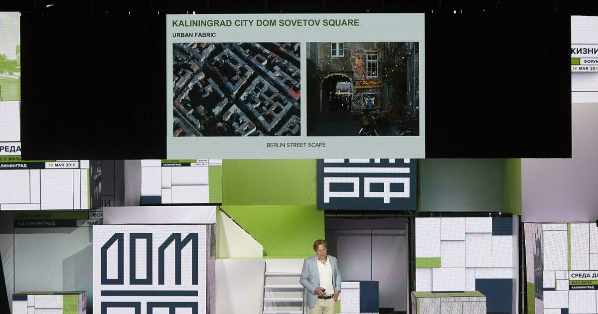 Архитектор из Нидерландов Мартин Бивенга представил проект благоустройства территории у Дома Советов, предложив разместить там парковую зону с фонтанами и большой площадью в центре, на которой можно проводить концерты и ярмарки. Презентация проекта прошла в первый день форума "Среда для жизни" в пятницу, 18 мая.