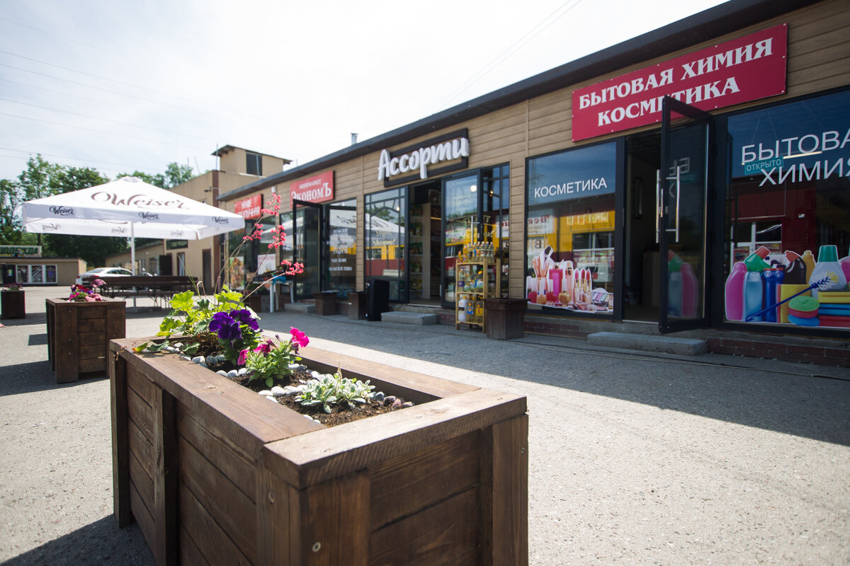 Весной на Тихорецкой открылся бюджетный гипермаркет "Вселенная", предлагающий товары для всей семьи. По соседству находятся магазины бытовой химии, спецодежды, различных напитков, а также крупная площадка по продаже подержанных машин.