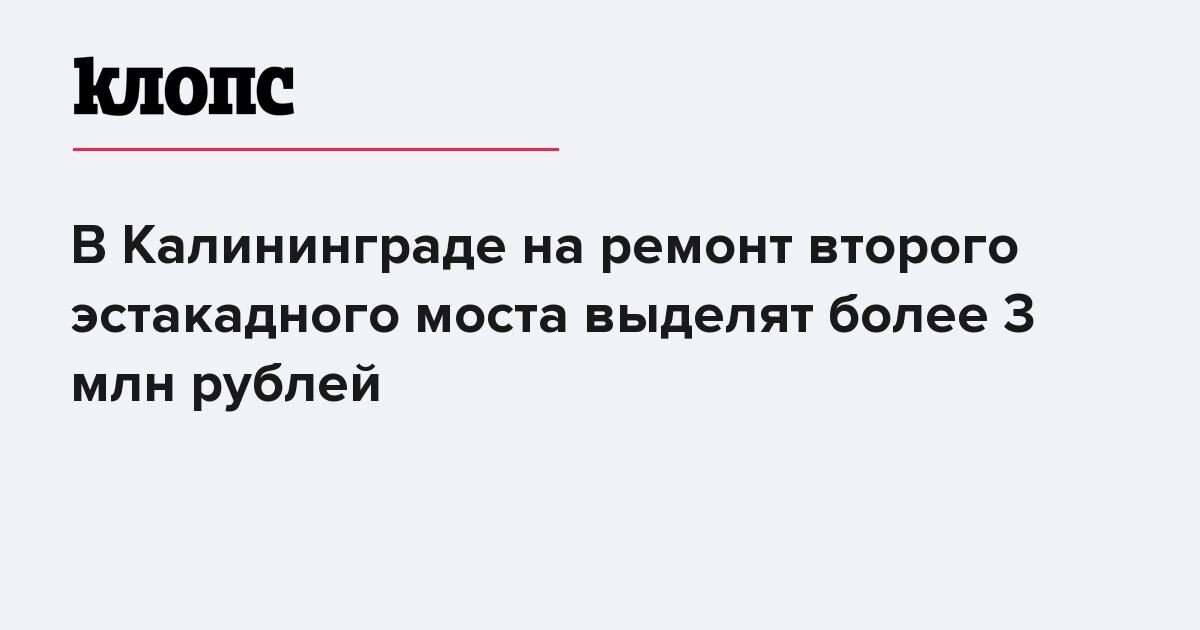 Мэрия Калининграда планирует выделить более 3 млн рублей на ремонт второго эстакадного моста. Информация опубликована на сайте госзакупок.