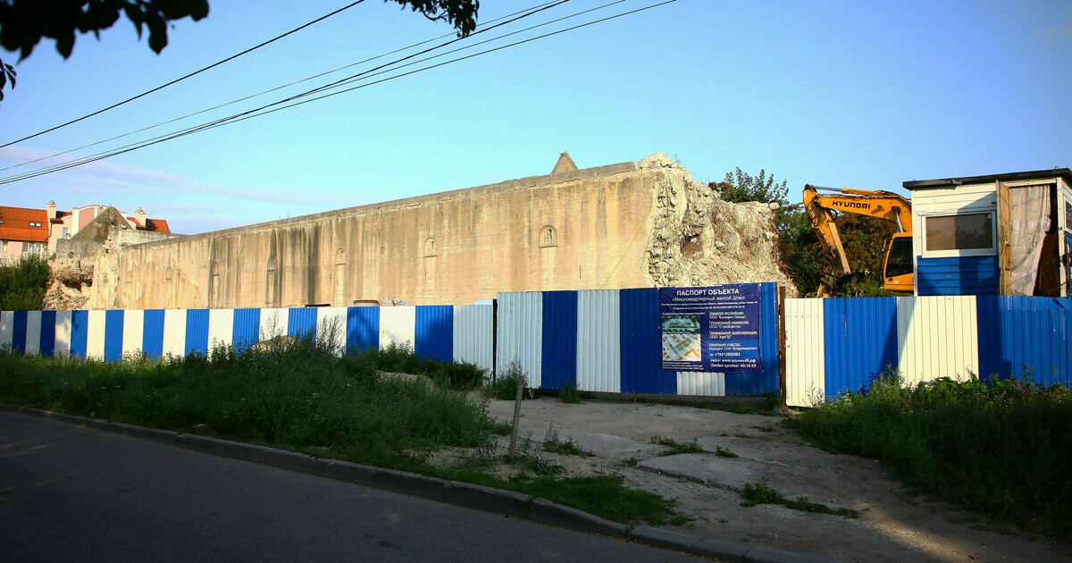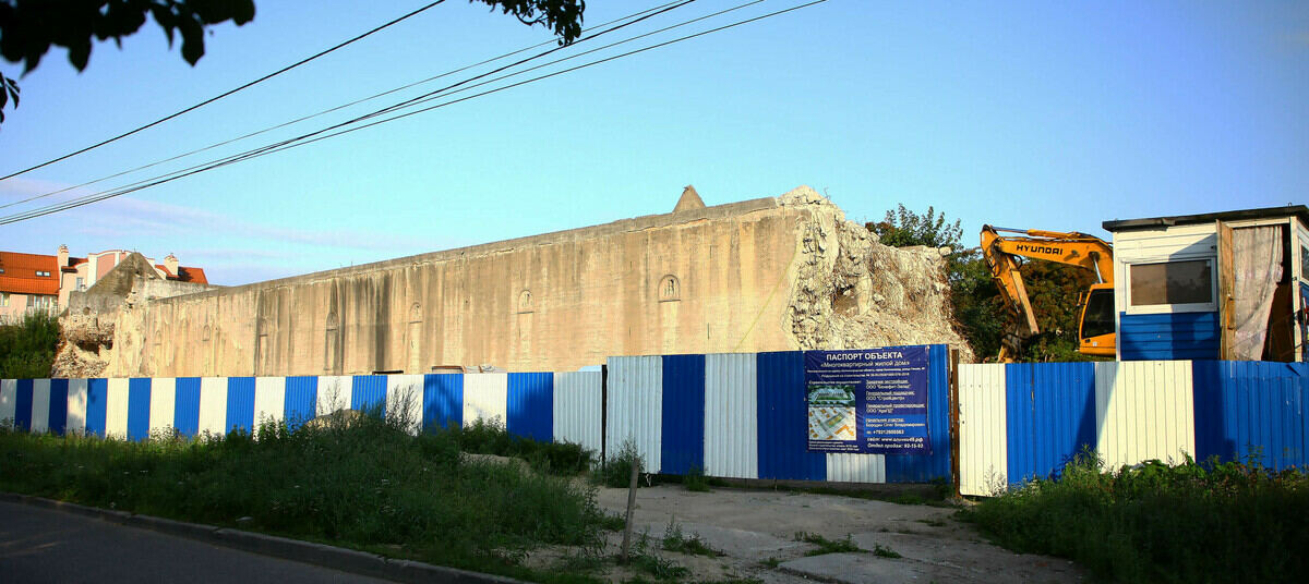 На информационном щите, установленном у входа на участок, указано, что застройщик — ООО "Бенефит-Запад". И оно же, согласно информации на листовках, должно было взрывать немецкое газоубежище. Однако представители компании заявили, что объявления распространяют конкуренты, чтобы спровоцировать жителей на протест против возведения дома.