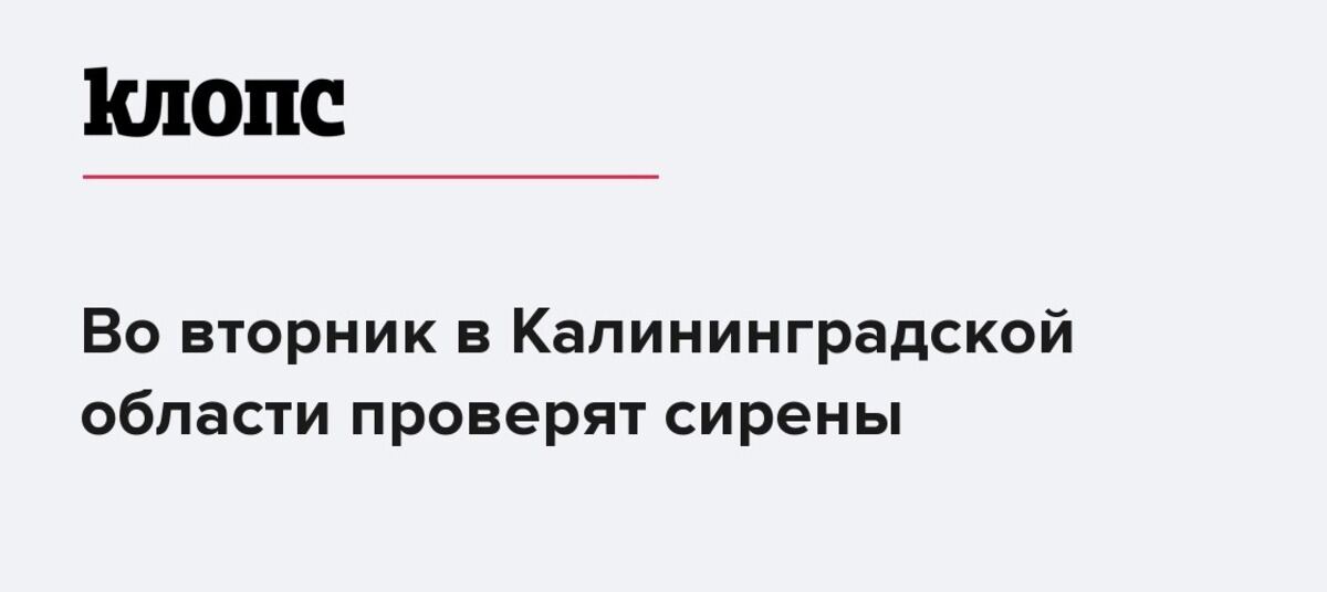 Сирены ненадолго включат в 11:00 в Калининграде, а также в административных центрах городских округов и районов области. Паниковать и предпринимать каких-либо действий жителям в указанное время не нужно.