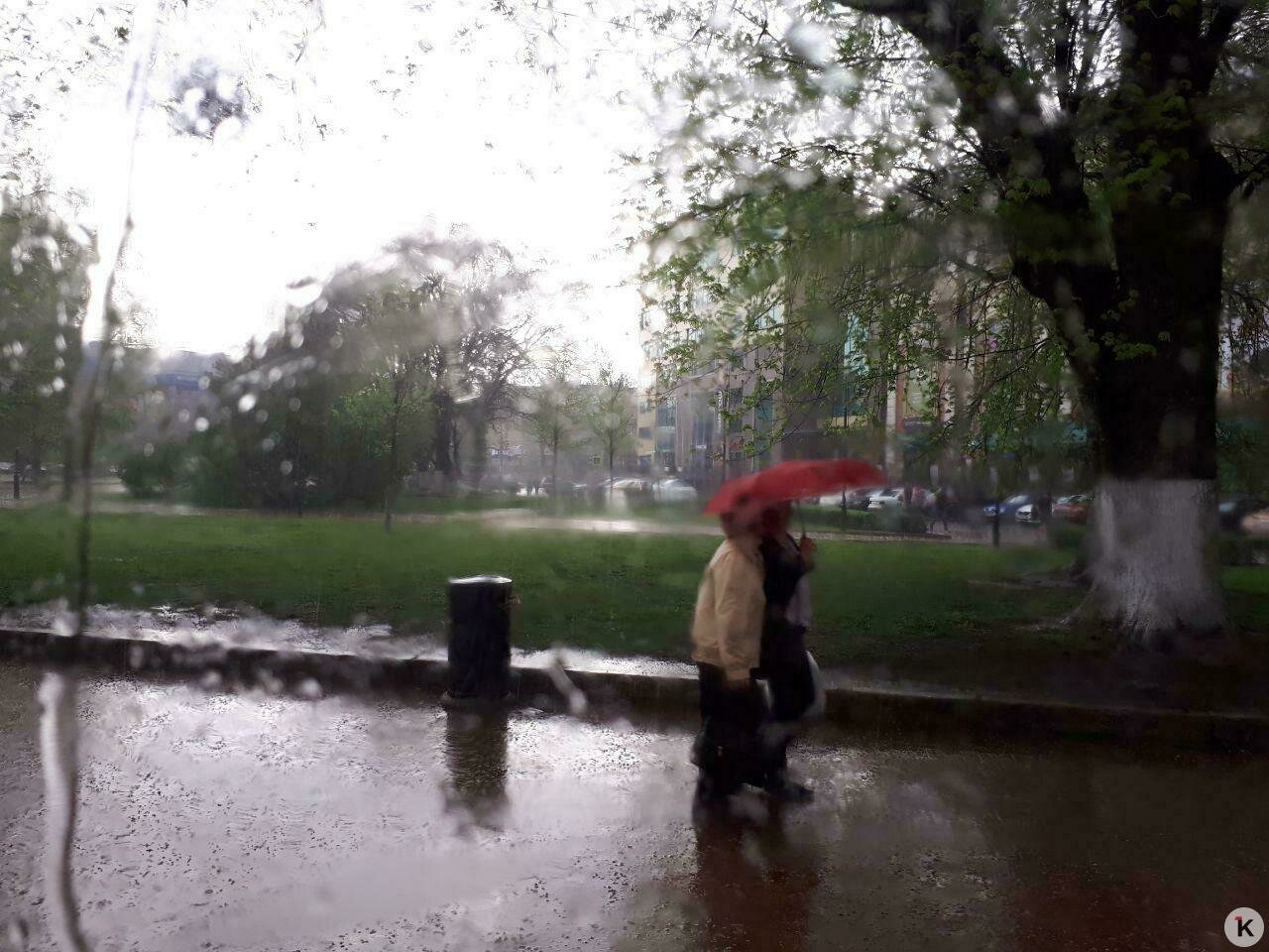 Жаркая погода сменилась сильным дождём днём в субботу, 27 апреля. По словам местных жителей, из-за ливня на переходе от пл. Победы к ул. Черняховского собрались лужи глубиной по щиколотку. Размер градин достигал сантиметра в диаметре.
