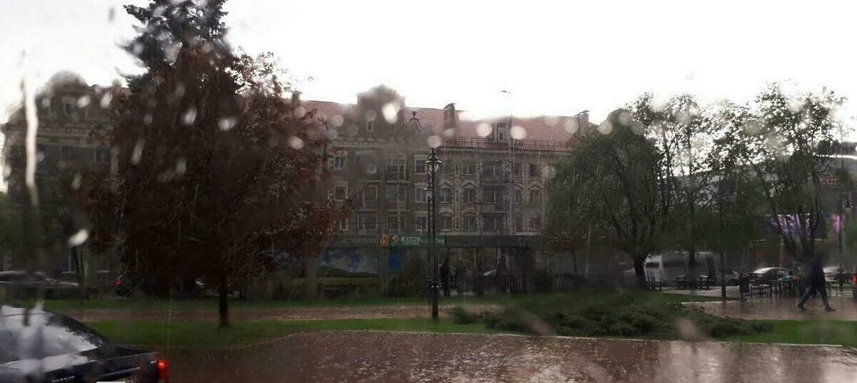 На Калининград обрушился ливень с градом. Об этом "Клопс" сообщают очевидцы.