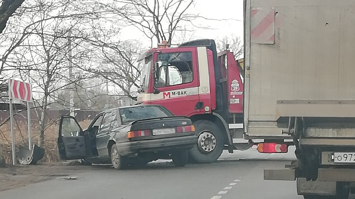 Авария произошла около полудня в среду, 24 февраля. Информации о пострадавших нет. По словам очевидцев, из-за столкновения грузовой машины и легкового автомобиля проезд на время оказался затруднён.